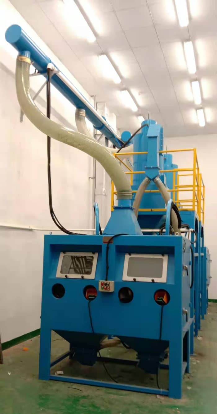 设备主要由吹砂室、旋风分离器、压入式喷砂系统、除尘系统、电控系统等部分组成,用于高温合金、不锈钢精密铸件的清理和表面光饰,应具有加工效率高,操作简单,占地空间小,环保无污染等特点。