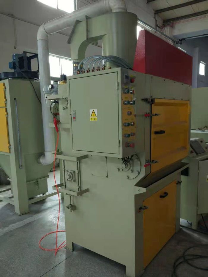 本自动喷砂机是针对不怕碰撞产品的喷砂加工要求而设计制作的专用喷砂设备。具有加工效率高,操作简单,节约能耗,环保无污染,喷砂加工后的产品喷砂效果均匀。本设备为密闭内循环舱式喷砂机,配置专业的旋风分离器,可实现磨料与粉尘的有效分离,保证产品加工的高质高效,同时最大限度节省磨料的消耗,独立的抽风除尘系统,能有效地收集和清理室体散布的粉尘,防止粉尘污染。